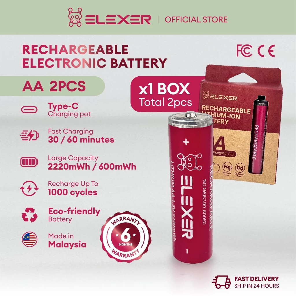 Experience the next generation of portable power with the ELEXER Rechargeable Lithium-Ion AA Batteries. Designed for efficiency and longevity, these batteries are perfect for high-drain devices such as cameras, gaming controllers, flashlights, and more.